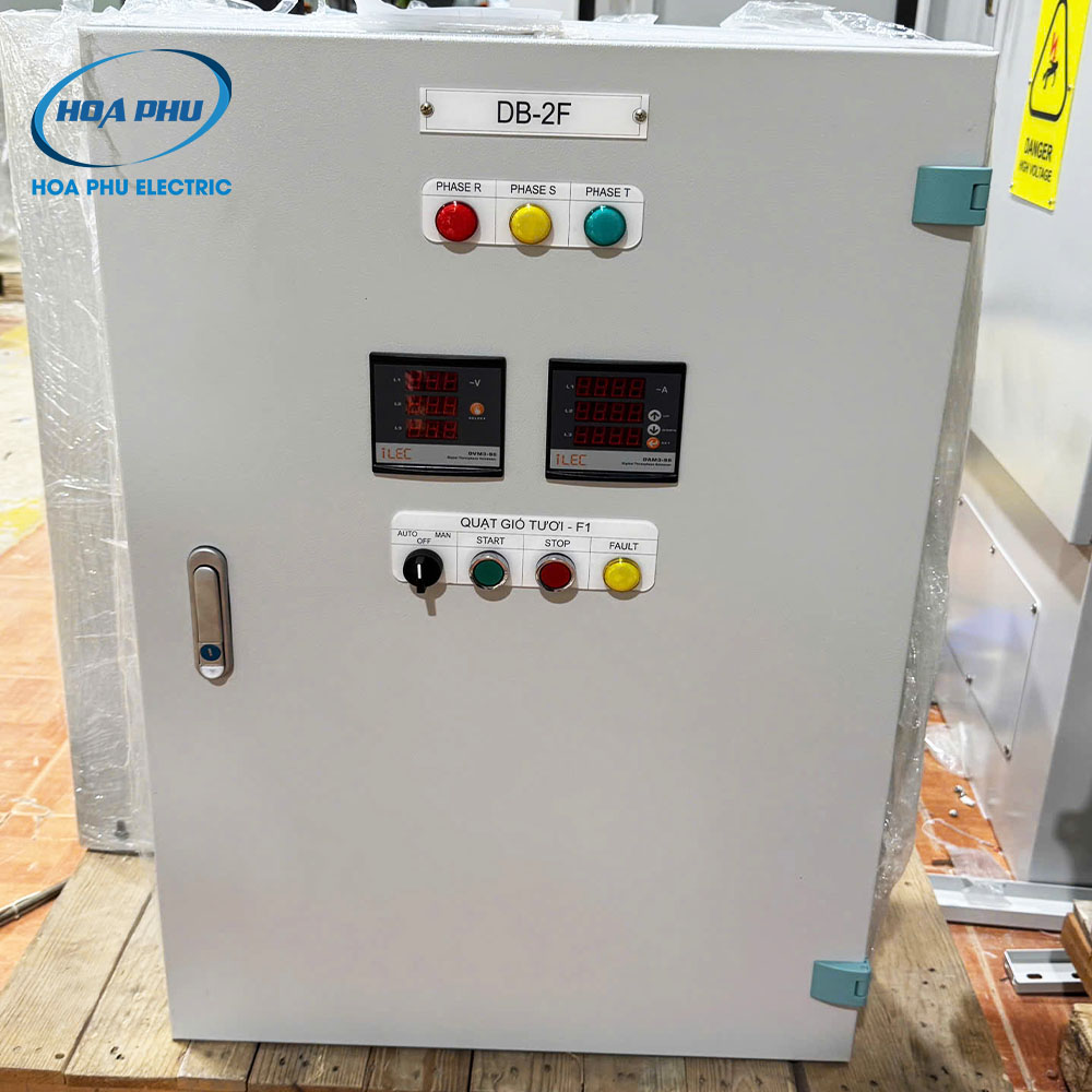 Tủ điện DB-2F do Điện Hòa Phú thiết kế và lắp ráp, chuyên dùng cho hệ thống phân phối và điều khiển tải 3 pha công suất nhỏ – trung bình trong nhà xưởng, khu kỹ thuật, hệ thống bơm và phụ trợ sản xuất.